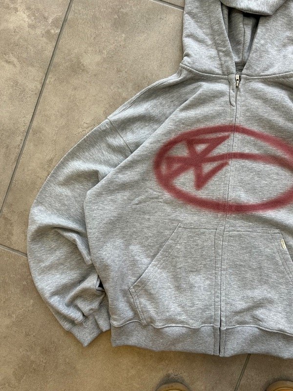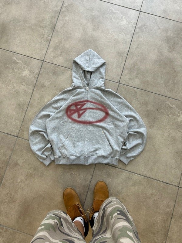 ZIP HOODIE OUD GRIS/ROJO